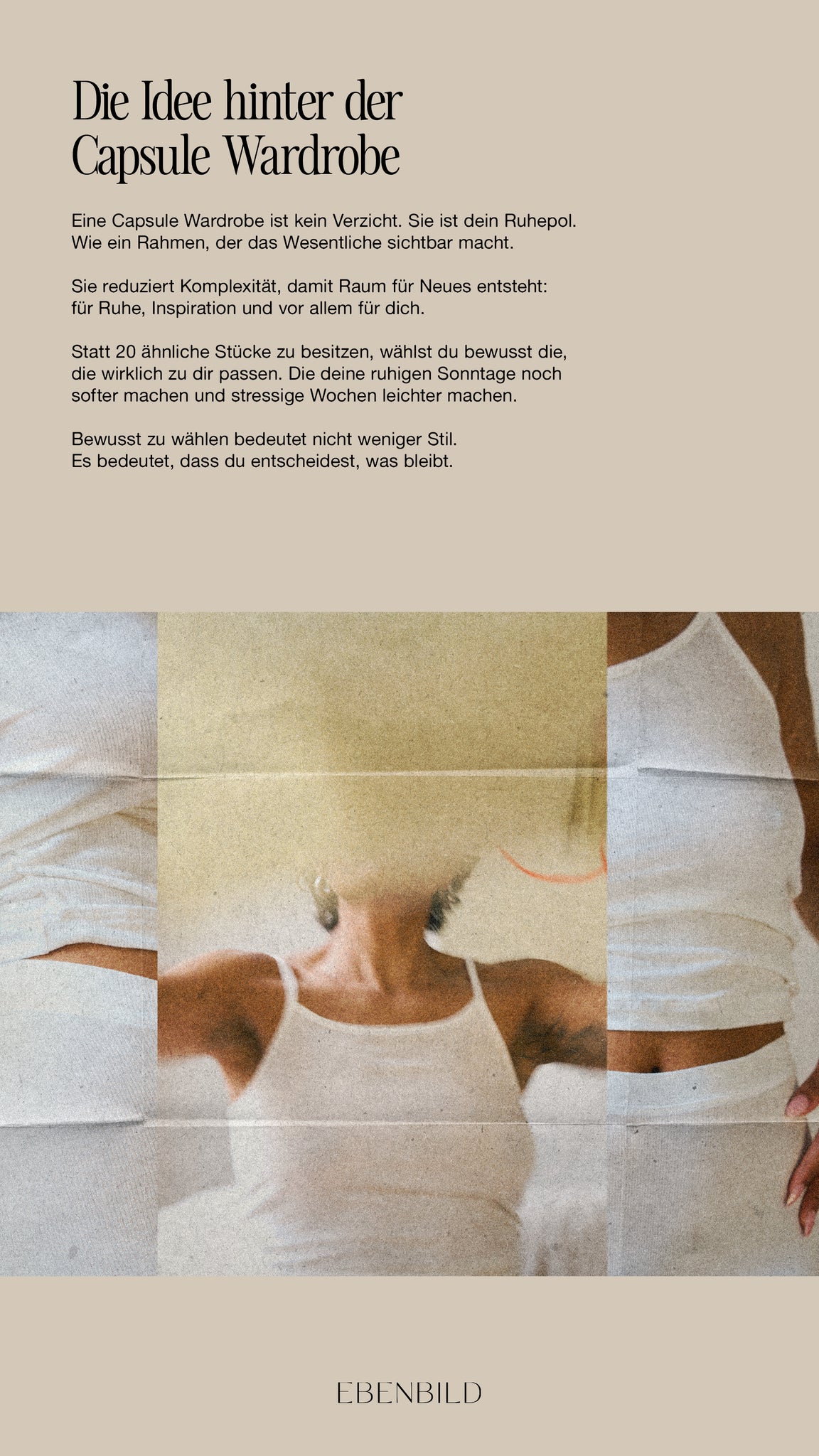 In dieser digitalen Ausgabe findest du die Essenz von Ebenbild: die Idee einer Capsule, die dich lange begleiten. Und kleine Routinen, die den Sonntag verlängern, selbst wenn Montag schon startet.